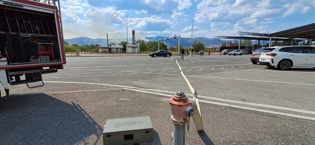 -На враќање од Србија, на граничниот премин Табановце од страна на полициски службеници беше побарано да интервенираме на пожарот кој се закануваше на самиот граничен премин. Поставивме линија од хидранска мрежа и интервениравме во координирана акција со Дирекција за заштита и спасување и по двата прелета на двата ер трактори со 100 постотна ефикасност нашата екипа се повлече од местото упатувајки се кон Кочани, информираат од ДПД – Кочани.